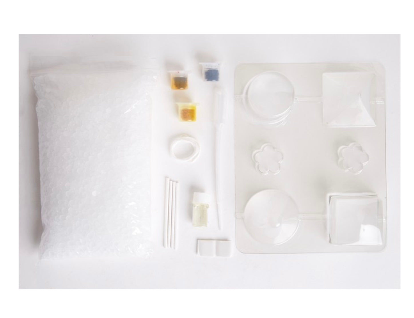 An excellent selection of both traditional and floating candles can be made and fragrance is included for perfumed candles. This kit is packed full with creative new ideas within this ever-popular pastime. Ideal for gifts. Kit includes wax pellets candle moulds coloured dyes fragrance oil bulb pipette wicks wick rods mould sealer and full instructions